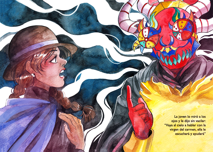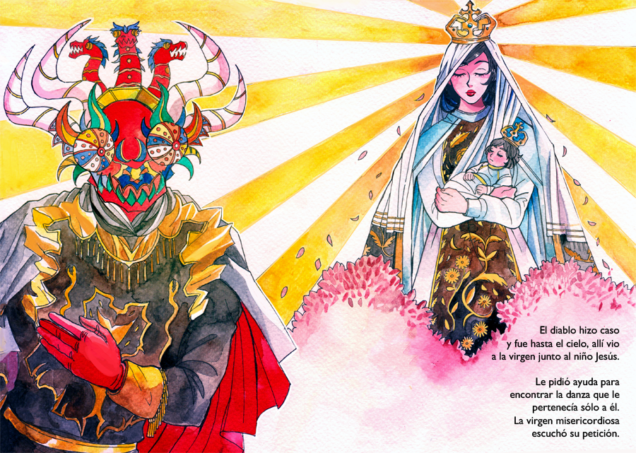 Original project related to "La Tirana" A cultural festivity in Chile's northern region. Drawn and written by Pía Prado Bley